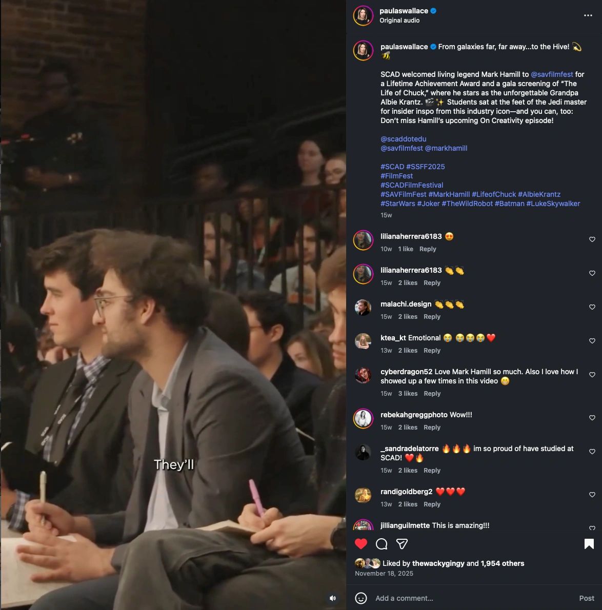 SCAD Welcomed living legend Mark Hamill to @Savfilmfest for a Lifetime Achievement Award and a gala screening of "The Life of Chuck" film.